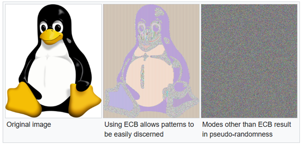 [1] Image source: https://en.wikipedia.org/wiki/Block_cipher_mode_of_operation#ECB